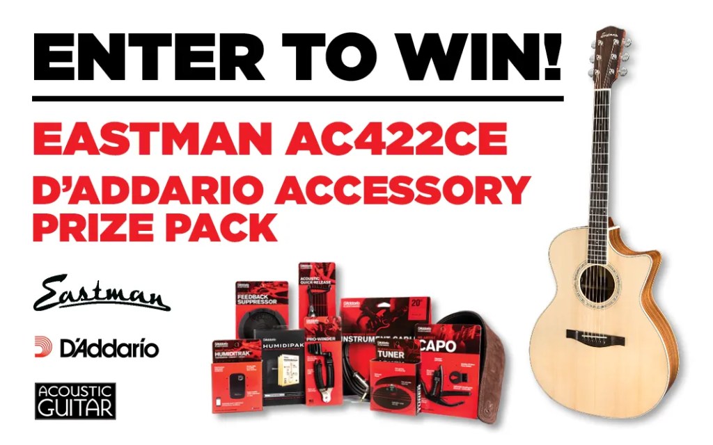 THIS GIVEAWAY HAS ENDED Achieve incredible clarity, balance and volume with our jumbo-shaped F-40, made in Southern California. This jumbo acoustic checks all the boxes for players who prize outstanding projection and enhanced mid-range. A satin varnish finish gives this guitar its familiar broken-in look and feel, while allowing the…