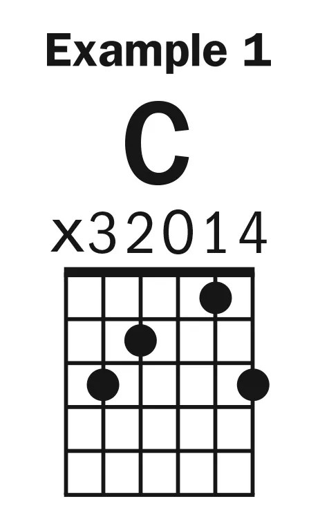 Amazingly, a C-chord fingering is nearly all you are going to need to play any major chord. Try adding your fourth finger on the third fret of the first string of an open C chord, as shown in Example 1. I call this voicing of a C chord “Freight Train C,” because almost